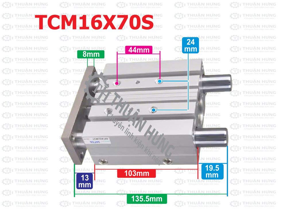 Kích thước và cấu tạo xi lanh 3 ty Airtac TCM/TCL